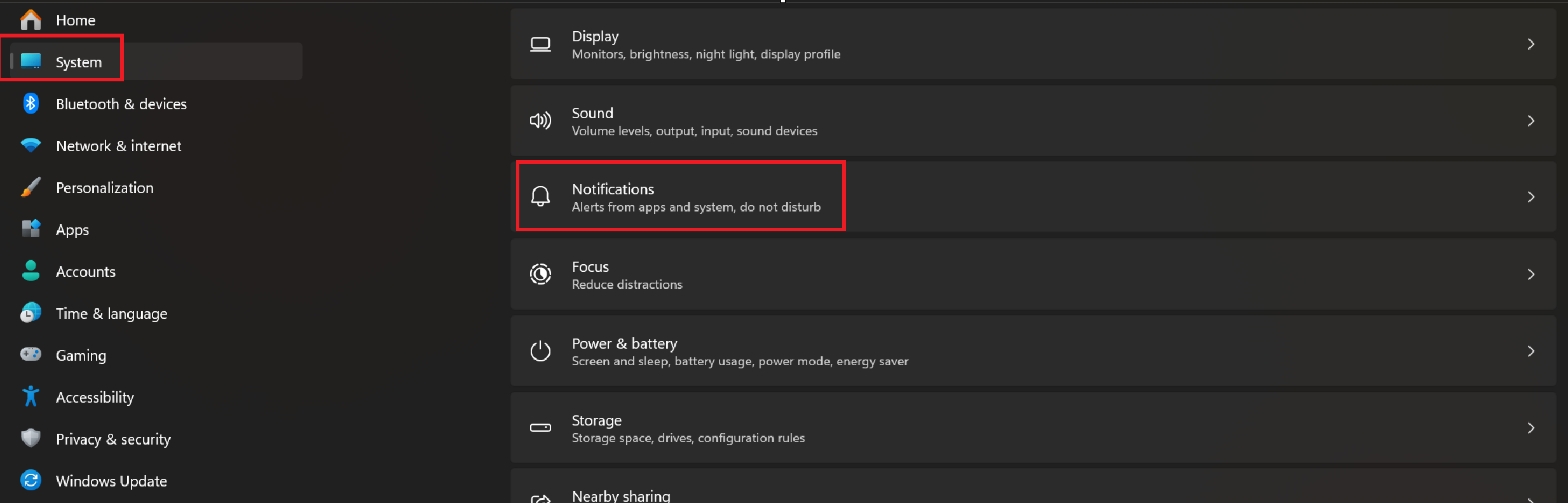 From there, choose "System" then "Notifications".